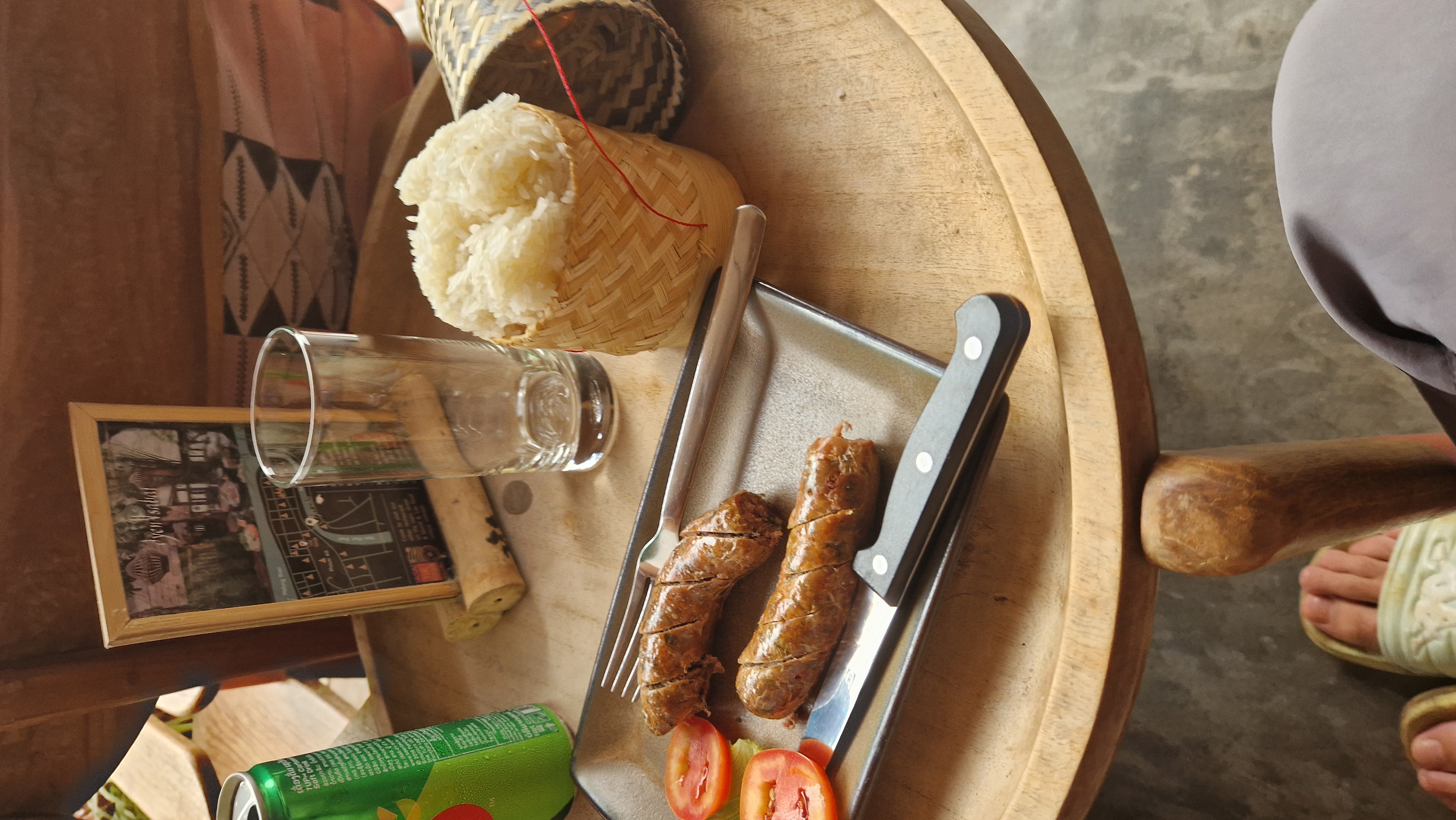 Petites histoires de comptoir sur Vang Vieng Autrefois surnommée le Cancun du Laos, cette ville était un véritable lieu de débauche où les étrangers (ou Falang, comme on les appelle au Laos) venaient faire la fête, se droguer, et malheureusement, certains perdaient la vie dans la rivière… Mais voilà, le gouvernement laotien a pris des mesures drastiques il y a quelques années pour résoudre ce problème, déplaçant l'activité vers le sud, plus précisément vers les 4000 îles. Aujourd'hui, Vang Vieng est plutôt tranquille, mais avec toutes les infrastructures en place, et dans un cadre somptueux qui plus est. On en a profité pour se régaler avec de la cuisine française : rillettes, mousse de foie de canard au porto, burger au canard, et des tartines au fromage ! Un vrai festin. On a aussi exploré une petite cave et les environs de Vang Vieng. Les montagnes y sont majestueuses, et chaque soir, des montgolfières colorent le ciel.