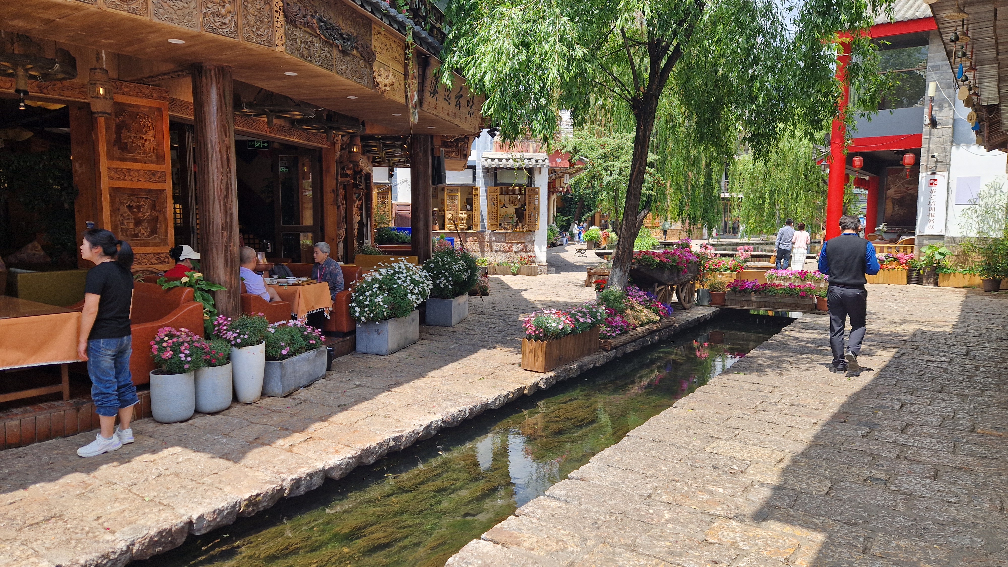 De retour à Lijiang, on se balade partout dans la vieille ville. Tout est absolument superbe, rien à redire. Notre hôte de maison nous conseille un restaurant et explique à la serveuse de nous faire le prix local. On a pu goûter une omelette à la truffe, des dumplings frits aux œufs et du tofu nuageux... Toujours excellent.