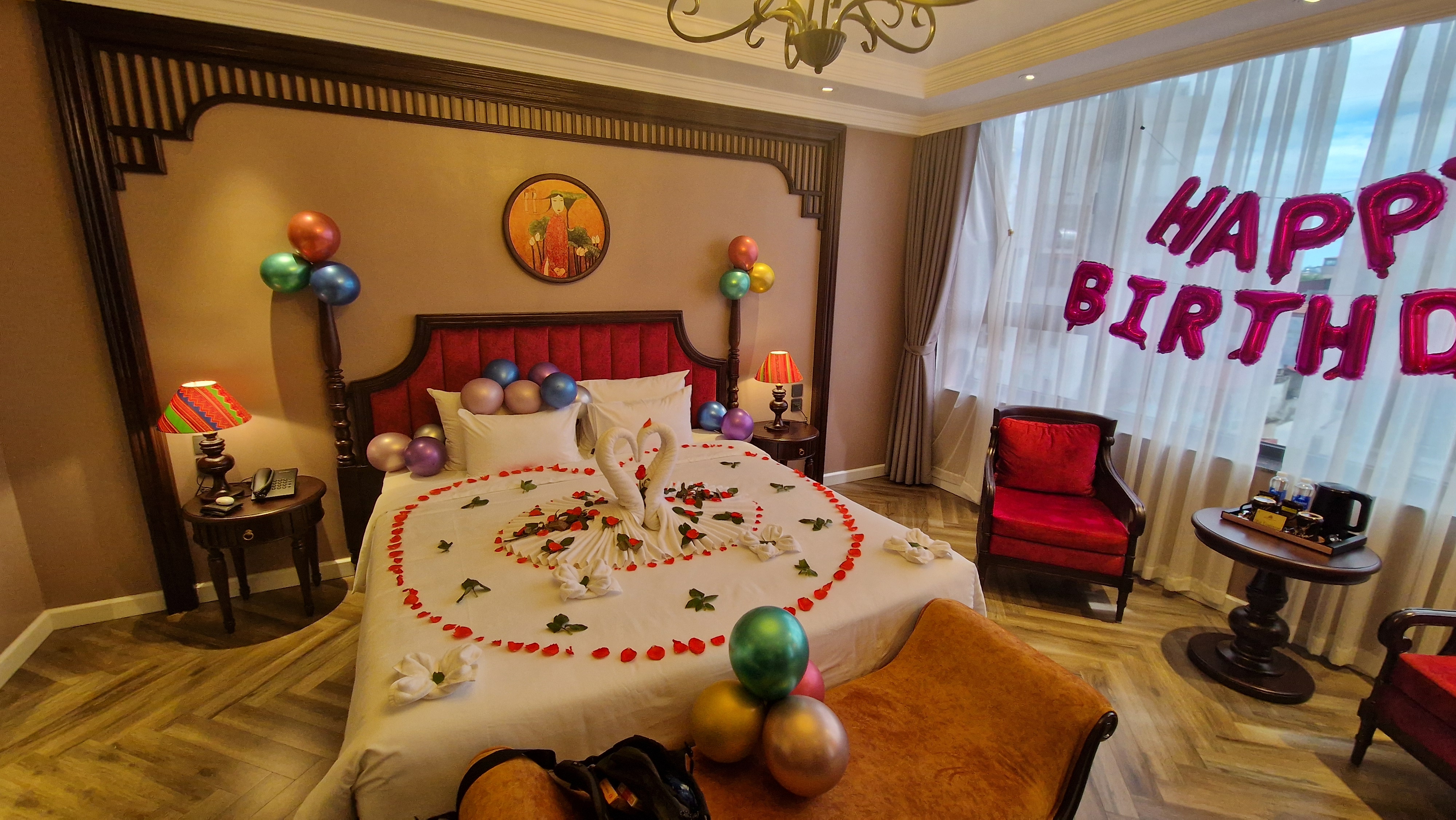 Et pour l'hôtel, j'ai eu droit à quelques belles surprises. Il y avait des décorations partout dans la chambre pour l'occasion, ainsi qu'un gros gâteau !