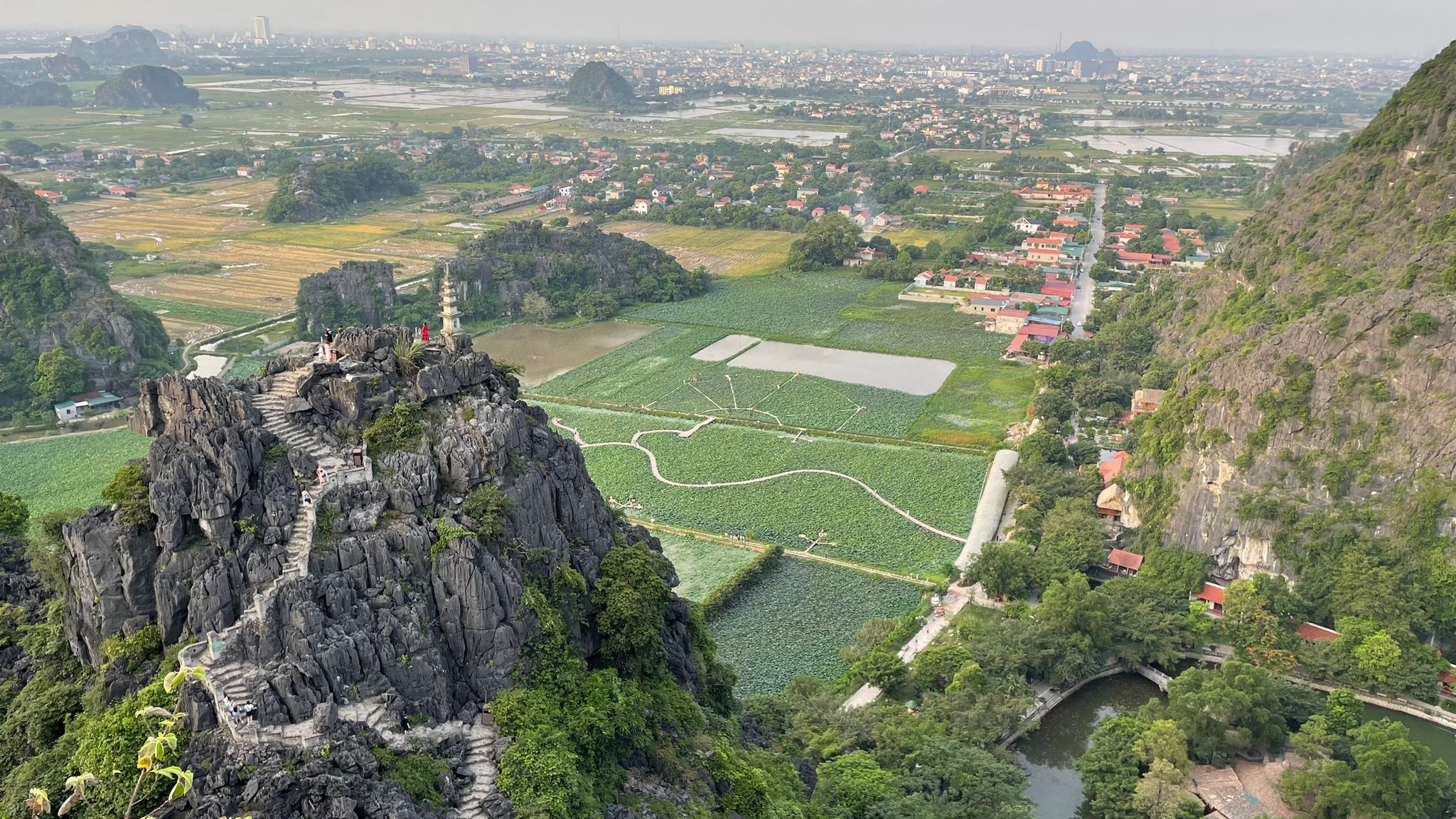 Nous avons passé une journée en scooter, au cours de laquelle nous avons découvert une grande pagode, des rizières, des petits villages, ainsi que des paysages karstiques resplendissants tout au long de la route. Pour couronner cette journée, nous avons visité la formation karstique de Hang Mua. Après environ 200-300 mètres d'escaliers, nous avons atteint un petit sommet qui offre une vue splendide à 360 degrés.